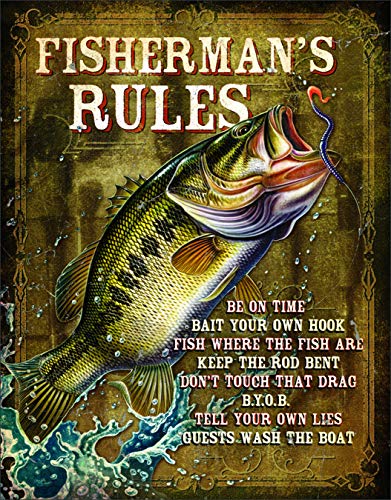 Desperate Enterprises Fisherman's Rules Tin Sign, 12.5" W x 16" H