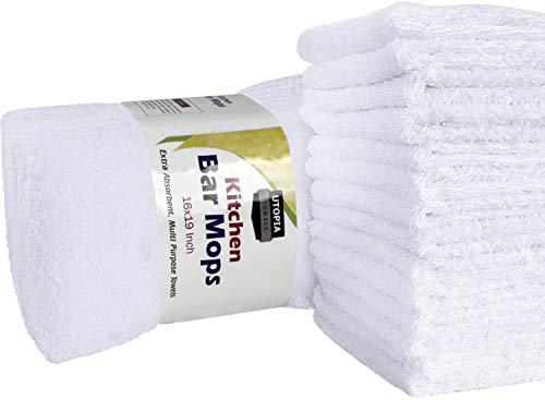 Utopia Towels 12 Pack Kitchen Bar Mop Towels 16 x 19 inches, White Bar Towels and Cleaning Towels