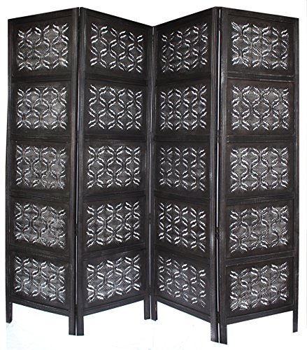 Rajasthan- Antique Brown 4 Panel Handcrafted Wood Room Divider Screen 72x80, Intricately Carved on Both Sides - Reversible- Hides clutter, Adds Décor, & Divides the Room (Antique Brown Rajasthan)