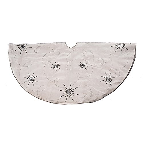 Kurt Adler 48-Inch Ivory Scroll Embroidery and Sequin Treeskirt