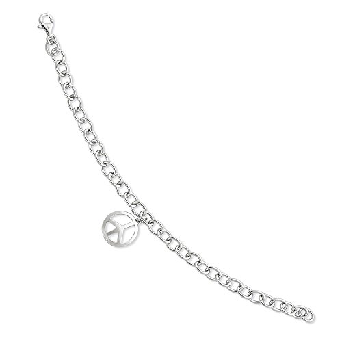 Sterling Silver 7.5in Single Peace Sign Charm Bracelet