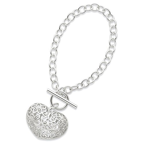 Goldia Sterling Silver 7.75 Inch Puffed Heart Toggle Bracelet