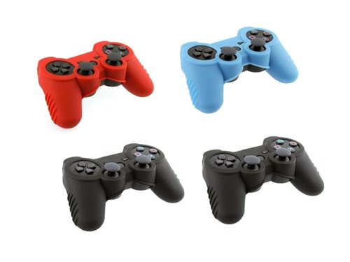 4in1 Combo Set Black x 2, Blue, Red Soft Silicone Skin Protector Cover Case Combo for Sony Playstaion PS3 Controller