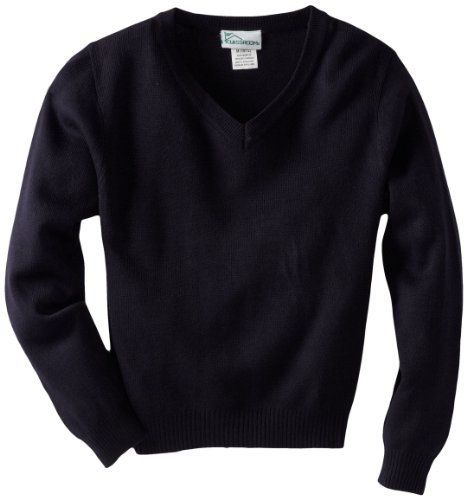 CLASSROOM Big Boys' Uniform Long Sleeve V-Neck Sweater, Dark Navy, Large