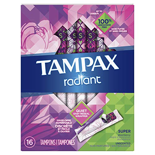 Tampax Radiant Tampons with Plastic Applicator, Super Absorbency, Unscented, 16 Count, Packaging May Vary