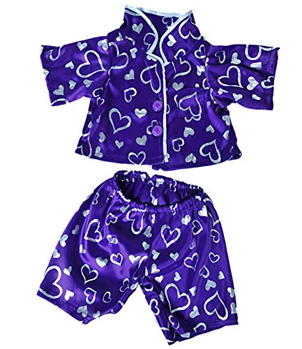 Dark Purple Silver Heart PJ's Teddy Bear Clothes Outfit Fits Most 14" - 18" Build-A-Bear, Vermont Teddy Bears, and Make Your Own Stuffed Animals