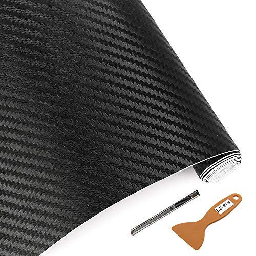 LZLRUN 3D Carbon Fiber Vinyl Wrap - Outdoor Rated for Automotive Use - 12 inches x 60 inches Contain Knife and Hand Tool (Black)