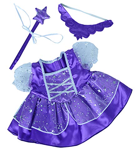 Purple Fairy Princess Dress w/Wand Teddy Bear Clothes Fits Most 14"-18" Build-a-bear and Make Your Own Stuffed Animals
