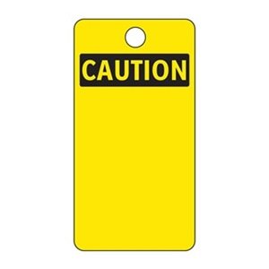 Caut Tag, 5-3/4 x 3 In, Bk/Yel, Met, PK25