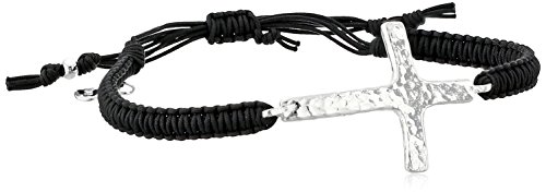 Tai Silver Cross, Matte Black Cord Easy Pull Bracelet