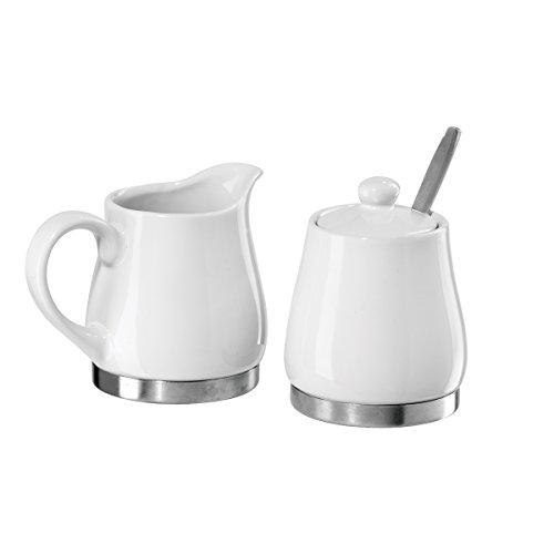 Oggi 5827.1 Ceramic Stainless Steel Sugar and Creamer Set, White