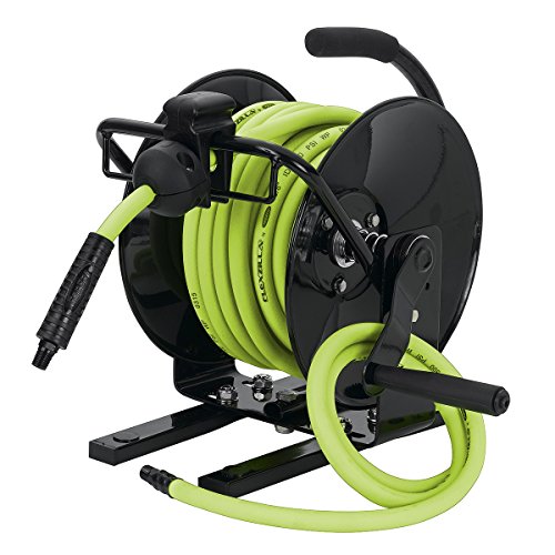 Flexzilla Portable Manual Open Face Air Hose Reel, 3/8 in. x 50 ft, Heavy Duty, Lightweight, Hybrid, ZillaGreen - L8651FZ