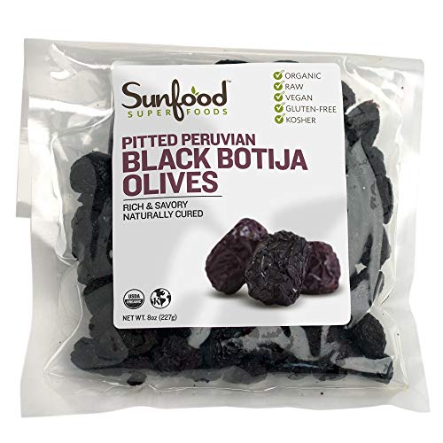 Sunfood Olives, Black Botija, Pitted, 8 Ounces, Organic, Raw