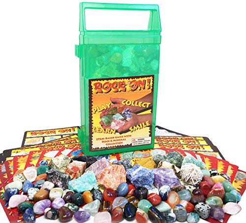 ROCK ON! Geology Game with Rock & Mineral Collection – Collect and Learn with STEM-based Educational Science Kit in Carrying Case - Amethyst, Rhodonite, Selenite Crystal, Unakite and lots more