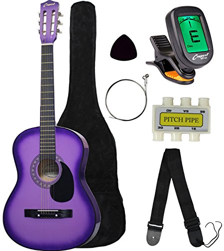 Crescent MG38-PUL 38" Acoustic Guitar Starter Package, Purple (Includes CrescentTM Digital E-Tuner)