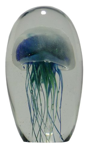 Glass Jellyfish Paperweight Blue Green 6" Glows in The Dark