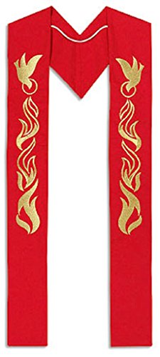 Pentecost Clergy Stole Embroidery on Polyester 110 Inches Long, Red