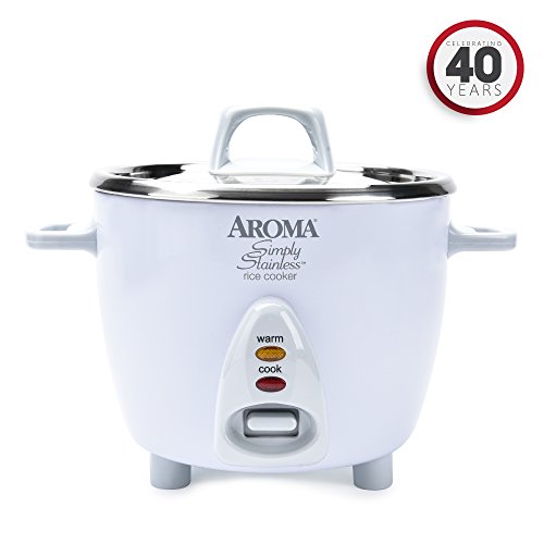 Aroma Simply Stainless Rice Cooker, White [Cooks 3 cups of uncooked rice]