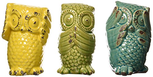 Imax 69230-3 Wise Owls – Set of 3 Ceramic Statuaries, Handcrafted Decor Accessories, Vintage-Inspired Showpieces. Home Decor