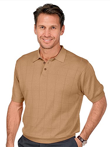 Paul Fredrick Men's Silk Grid Polo Collar Sweater Camel 2XL