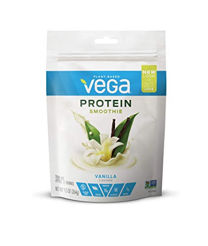 Vega Protein Smoothie, Vanilla, 12 Servings, 9.3 oz Pouch, Plant Based Vegan Protein Powder, Keto-Friendly, Gluten Free, Non Dairy, Vegan, Non Soy, Stevia Free, Non GMO
