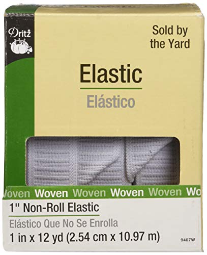 Dritz 9407W Non-Roll Woven Elastic, White, 1-Inch by 12-Yard