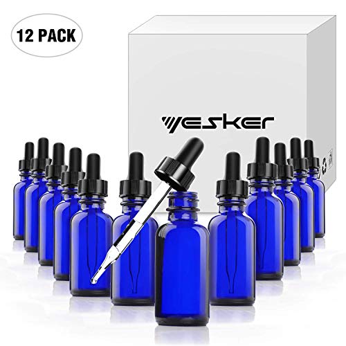 Yesker B36-12 Cobalt Glass Bottles with Glass Eye Dropper, 1 oz Capacity, Blue (Pack of 12)