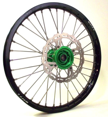 Warp 9 MX Complete Front Wheel - Green Hub with Black Painted Rim (21x1.60")