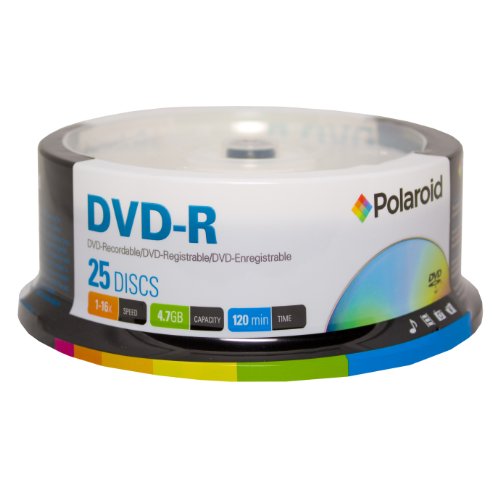 Polaroid PRDVDR0025S DVD-R 4.7GB 120-Minute 16x Recordable DVD Disc, 25-Pack Spindle