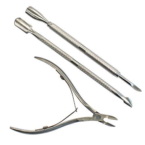 TRIXES Cuticle Care Kit - 3 Piece - Cuticle Cutter Nipper - Pushers and Tidy - Stainless Steel