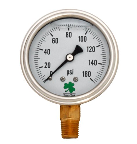 Zenport LPG160 Zen-Tek Glycerin Liquid Filled Pressure Gauge, 160 PSI