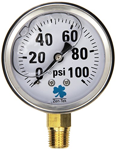 Zenport LPG100 Zen-Tek Glycerin Liquid Filled Pressure Gauge, 100 PSI