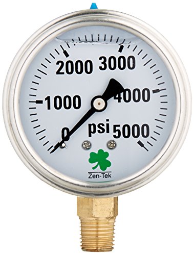 Zenport LPG5000 Zen-Tek Glycerin Liquid Filled Pressure Gauge, 5000 PSI