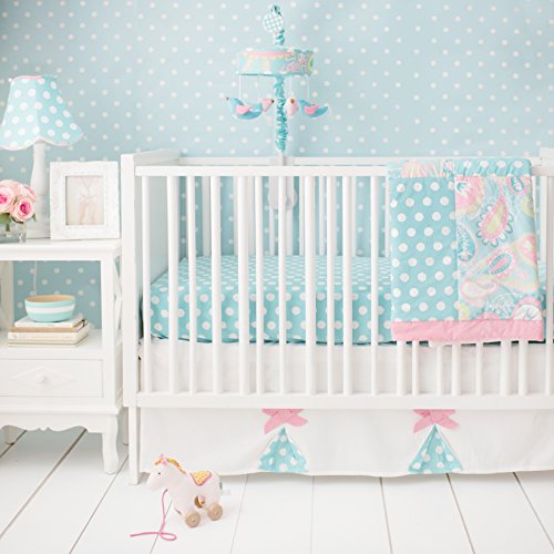 My Baby Sam Pixie Baby 3 Piece Crib Bedding Set, Aqua and Pink
