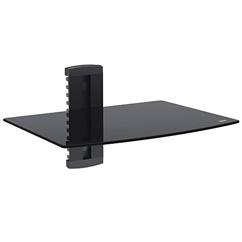 VonHaus 1x Floating Wall Shelf with Strengthened Tempered Glass - Adjustable - Black - DVD Players/Cable Boxes/Games Consoles/TV Accessories