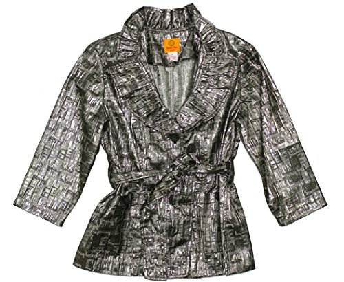 Ruby Rd Chic Mystique 3/4 Sleeve Belted Jacket Black Silver 10P