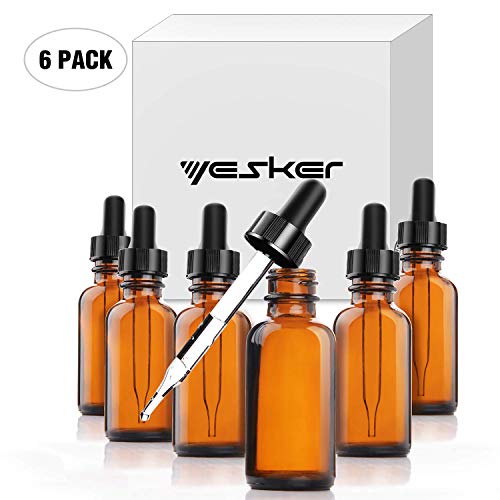 Yesker Amber Glass Bottles for Essential Oils with Glass Eye Dropper 30 ml (1oz) for Essential Oils, Chemistry Lab Chemicals, Colognes & Perfumes- Pack of 6
