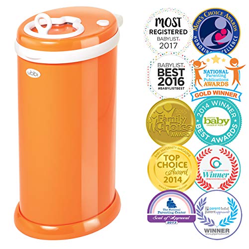 Ubbi Money Saving, No Special Bag Required, Steel Odor Locking Diaper Pail, Orange
