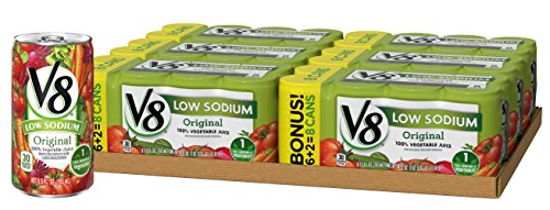 V8 Original Low Sodium 100% Vegetable Juice, 5.5 Fl Oz Can (6 packs of 8, Total of 48)