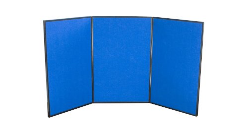 Displays2go Tri Fold 3-Panel Display Board, 72 x 36 Inches, with Blue Velcro-Receptive Fabric and Write-On Whiteboard (3PV7236BLU)