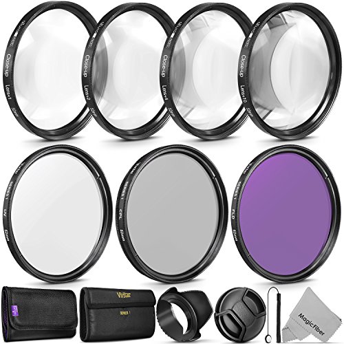 52MM Vivitar Professional UV CPL FLD Lens Filter and Close-Up Macro Accessory Kit for Lenses with a 52mm Filter Size