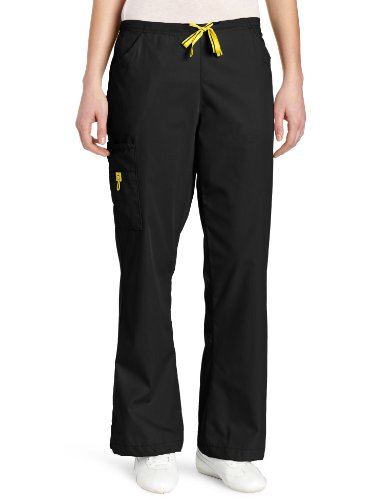 WonderWink Women's Scrubs Romeo 6 Pocket Flare Leg Pant, Black, Medium/Petite