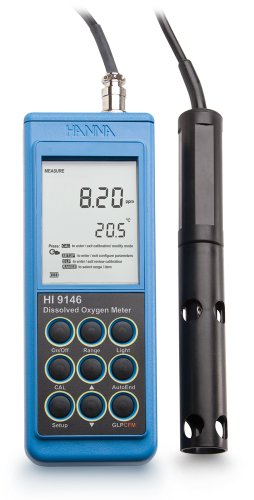 Hanna Instruments HI9146-10 Dissolved Oxygen Meter with 10m Probe Cable, 0.00 to 45.00 mg/L (ppm), 0.01 mg/L (ppm), +/-1.5%, 0 to 50 Degree C