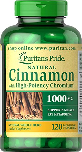 Puritan's Pride Cinnamon Capsules with High Potency Chromium, 1000 mg, 120 Count