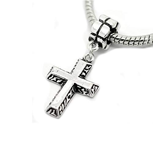 SEXY SPARKLES Silver Tone Cross Charm Spacer Bead for Snake Chain Charm Bracelet