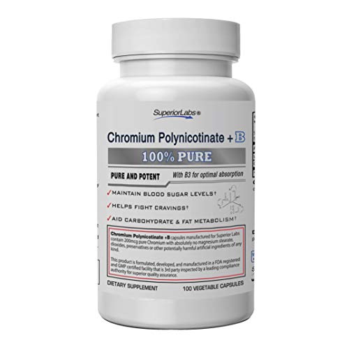 Pure Chromium Polynicotinate Supplement - Made In USA - 200mcg + Vitamin B3 for Optimal Absorption, Veggie Cap, 14 week Supply, 100% Money Back Guarantee