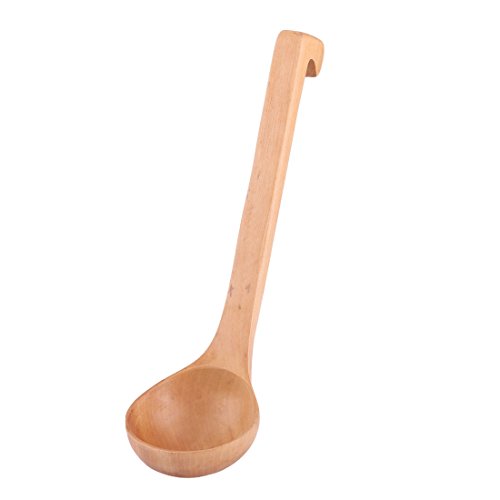 uxcell Wooden Tableware Hook End Design Soup Ladle 11.4 Inch Brown