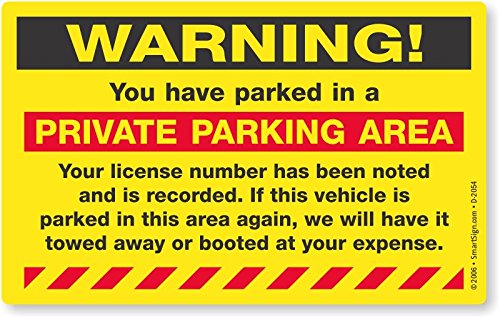 SmartSign "Warning - You Have Parked in a Private Parking Area Parking Violation Sticker |5" x 8" Fluorescent Paper