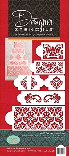 Designer Stencils C406 Martha Stewart's Damask Cake 5-Tier Cake Stencil Set, Beige/Semi-Transparent