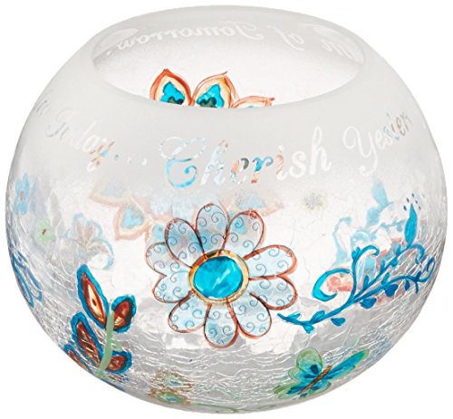 Pavilion Gift Company Perfectly Paisley Cherish Dream Live Crackled Glass Candle Holder, 5-Inch Round, Inspirational Saying